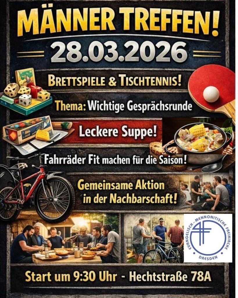 Aktuelle Veranstaltungen 2026 31.01.9-13 Uhr Hausputz 01.02.10 Uhr Gottesdienstfeier 05.0219.30 Uhr Gemeindegespräch mit Abendmahl 08.02.10 Uhr Gottesdienstfeier 15.02. 10 Uhr Gottesdienstfeier 19.02.-22.02.Narnia Tage Kinderbibeltage in den Winterferien mit Anmeldung! 22.02.10 Uhr Familiengottesdienst + gemeinsames Mittagessen 01.03.10 Uhr Gottesdienstfeier Ausblick 22.03.JMV + Gemeindeleitungswahl 28.03.Männer Treff 02.-04.10. Gemeindefreizeit in der Gemeinde