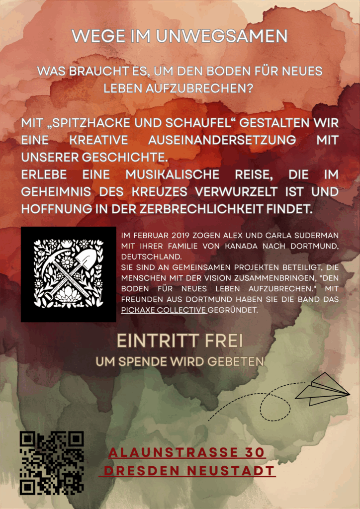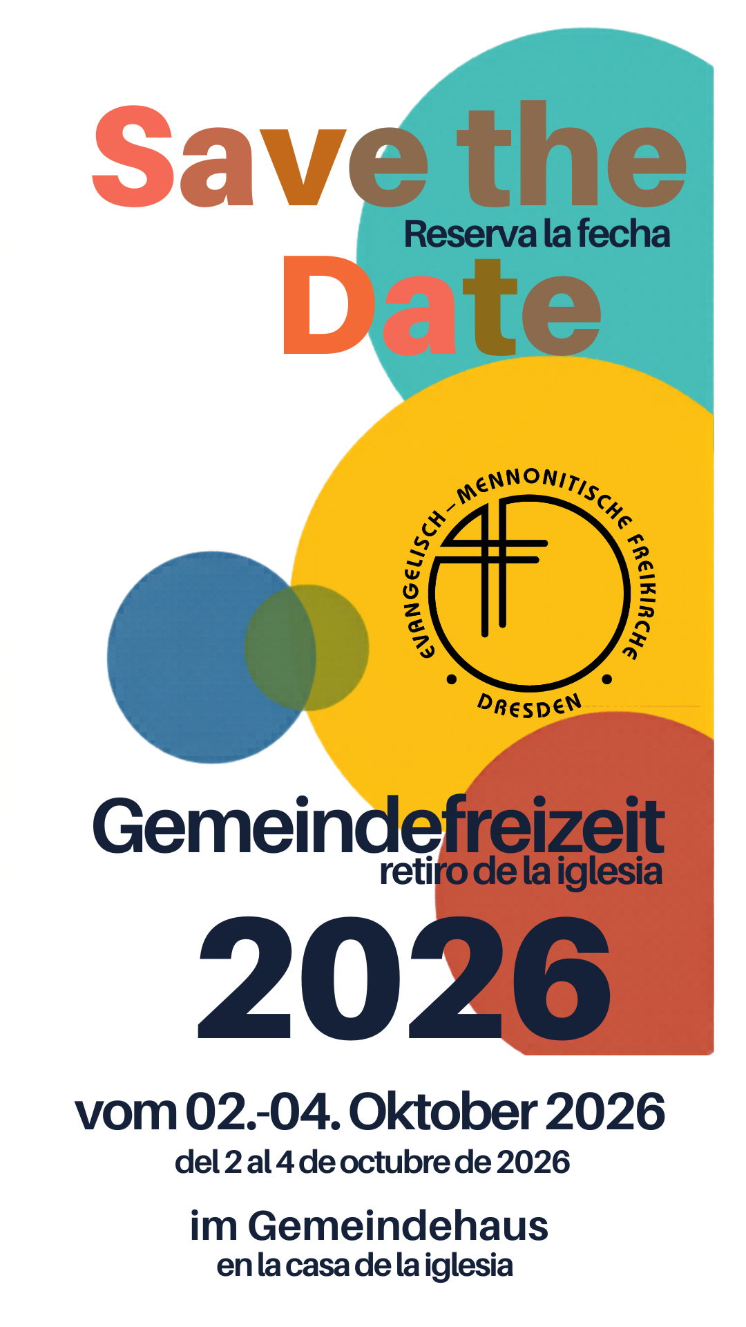 Aktuelle Veranstaltungen 2026 29.03.10 Uhr Gottesdienstfeier Liveübertragung 60-jähriges AMBD Jubiläum 02.04.KEIN Gemeindegespräch 03.04.16-19 Uhr Seder Feier am Karfreitag Anmeldung beendet 05.04.10 Uhr Familiengottesdienst zum Ostersonntag 12.04.10 Uhr Gottesdienstfeier 19.04.10 Uhr Gottesdienstfeier 26.04.10 Uhr Jugendgottesdienstfeier 02.05.Frauen Treff mit Anmeldung 03.05.10 Uhr Gottesdienstfeier mit Abendmahl Ausblick 09.05.Konzert Pickaxe Collective in der A30 07.06.St. Pieschen Gottesdienstfeier 21.06.Taufe 02.-04.10. Gemeindefreizeit in der Gemeinde